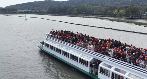 井然有条列队乘船