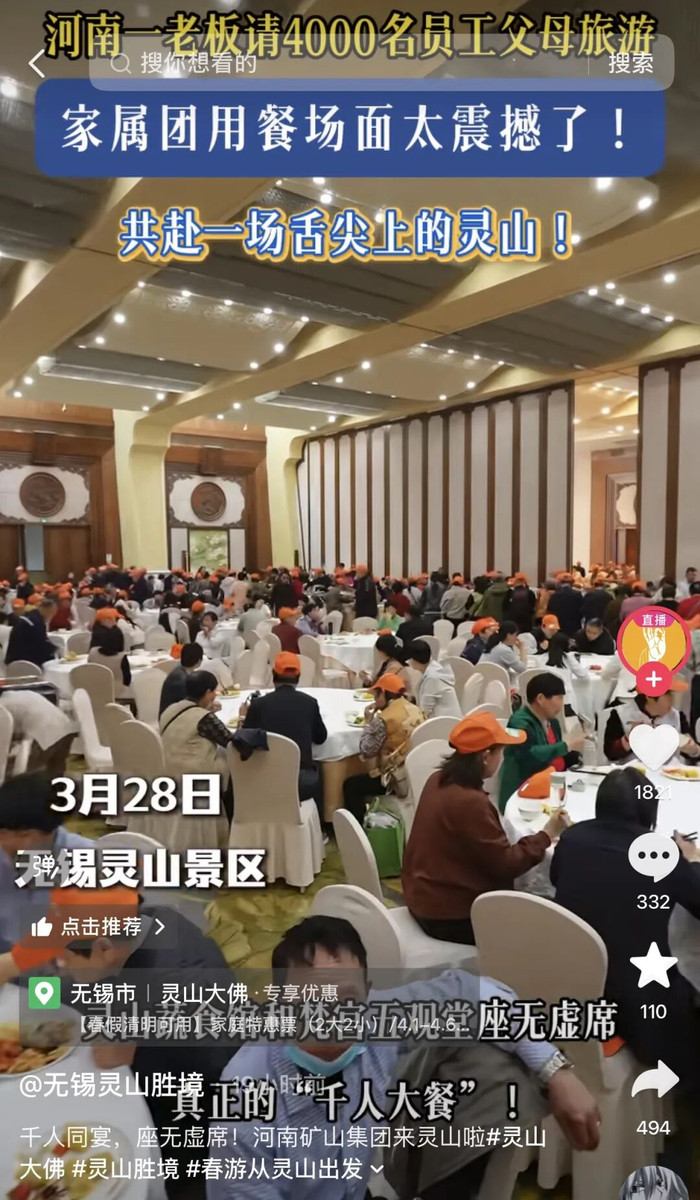 据了解,这支旅行团是河南省矿山起重机有限公司在第14届“孝文化”感德旅游节时刻,组织的“职工父母春游团”,团聚十足是公司职工的父母。这场孝亲之旅由“全网最爱发钱的雇主”河南矿山集团董事长崔培军全额买单,预算超1000万元。
