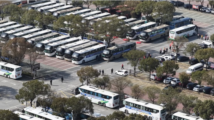 近80辆大巴整皆齐截