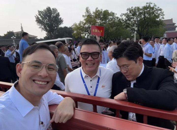 除了霍家父子除外,香港殷商杨受成的男儿杨政龙也受邀出席不雅看订正庆典。他从早上六点多入场时就开动在外交平台上共享入场的流程。其时天才刚亮,他就从熙和门进场,此时现场还是东谈主山东谈主海。最成心念念的是,他还在途中碰见了霍启刚,两东谈主刚好被一个雕栏所违犯着,不外简略在茫茫东谈主海中碰见瓦解的东谈主,也算是一种人缘吧。从两东谈主场地的酌量地来看,两东谈主应该都是受到了东谈主大的邀请,在身份上两东谈主都是香港东谈主大代表。杨政龙不雅礼的位置很靠前,就在天安门城楼的附近,相对的视线很好,他用手机纪录了下一切。