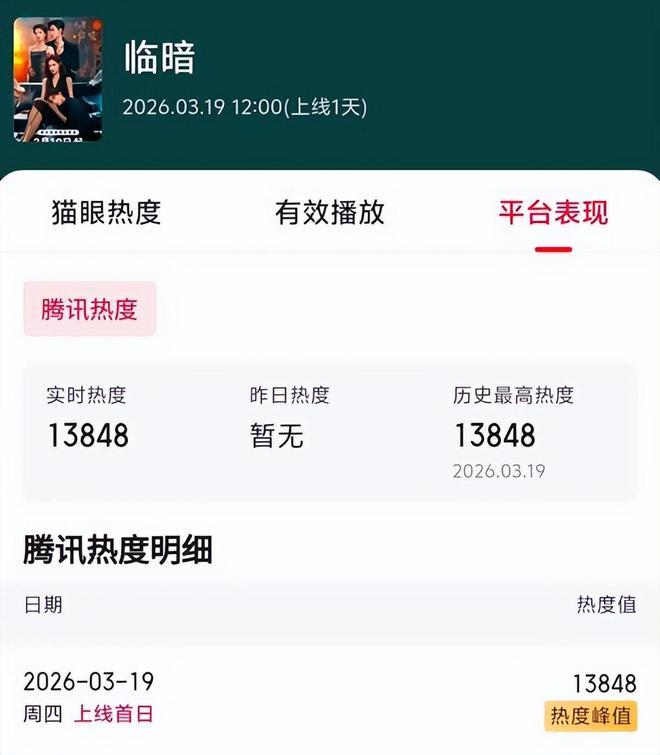 首播热度高达13000,颇有爆款潜质。